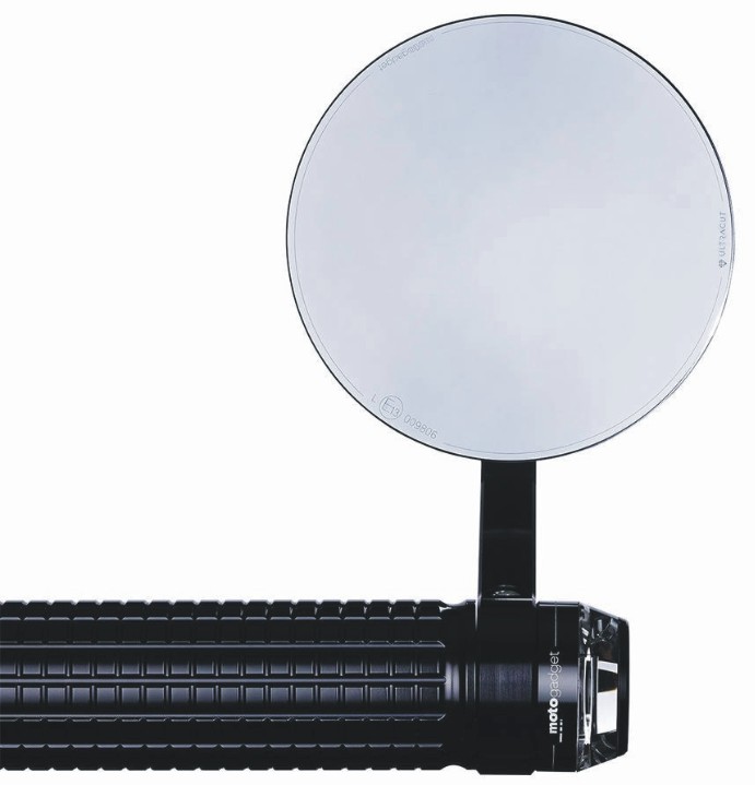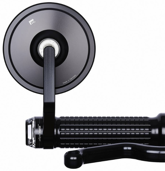 Wie bei allen motogadget Produkten ist auch die Spiegelserie einmalig. Denn diese Spiegel sind glaslos. Die patentierte konvexe Spiegelfläche ist direkt auf das Aluminium des Spiegels aufgetragen und durch eine spezielle Plasmabeschichtung gegen Oxidation, Korrosion und Kratzer geschützt. Somit gehören gebrochene oder herausfallende Spiegelgläser der Vergangenheit an! Diese einzigartige Technik ermöglicht einen extrem flachen und leichten Korpus. Alle Spiegel sind über einen Kugelkopf individuell einstellbar. Die Lenkerendenspiegel werden direkt auf dem Lenkerende verschraubt, oder auch mittels der m.view bar adapter Lenkerenden außen am Lenker montiert (Wenn benötigt, bitte die Lenkerenden-Adapter mitbestellen!). Die ABE konformen Lenkerendenspiegel haben eine Armlänge von 130mm. Sie können über und unter dem Lenker montiert werden und sind für rechts und links identisch.