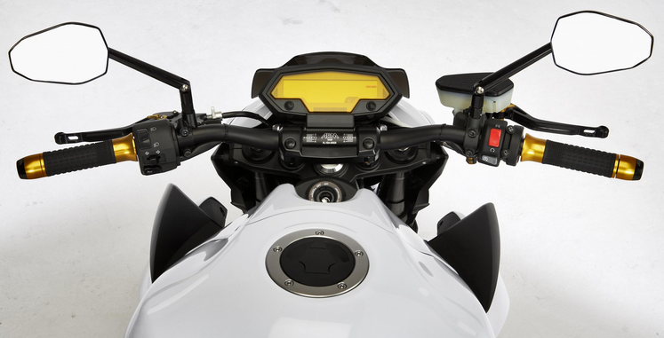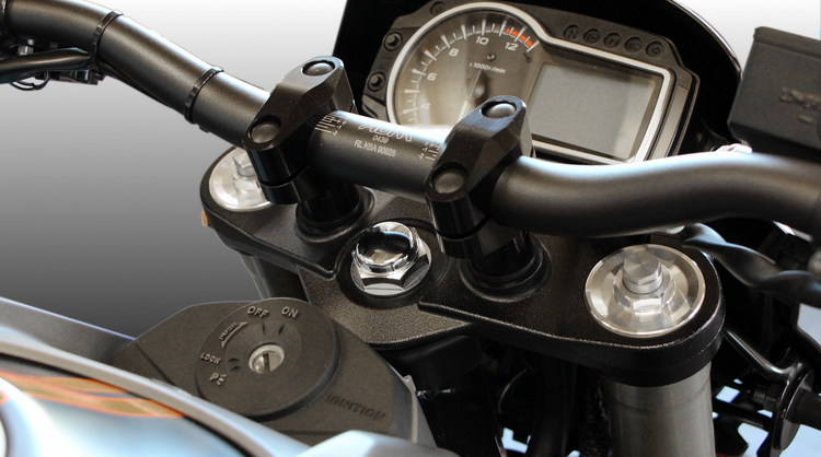 ABM Streetbike Booster Lenker mit 28,6mm Klemmung und 22mm Außen. Unterschied zum Superbike-Lenker ist die flachere, geradere Form des Lenkers. Hier ist zu prüfen ob die Serienleitungen und Züge ausreichend sind, oder vielleicht getauscht werden müssen. (Sollten bei diesem Lenker jedoch immer passend sein.)